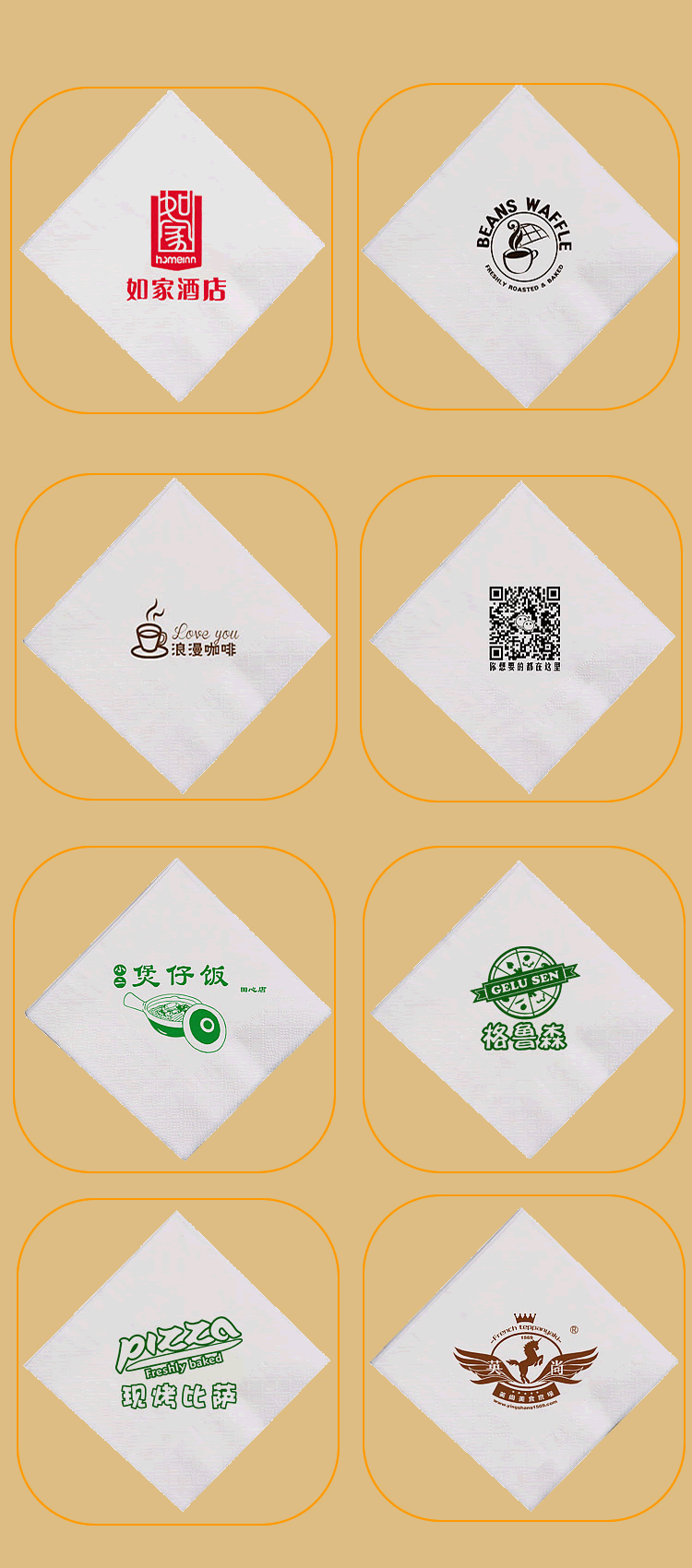 合肥億竹紙品包裝有限公司是一家專業(yè)從事各種生活用品定制的企業(yè),定制熱線:18919603840(周經(jīng)理)。公司與各大餐飲行業(yè)、酒店、加油站、學(xué)校、KTV娛樂(lè)會(huì)所、銀行、汽車(chē)4S店、房地產(chǎn)、廣告公司等客戶長(zhǎng)期合作,業(yè)務(wù)覆蓋安徽全省。公司主營(yíng)產(chǎn)品:廣告盒抽定制、餐巾紙定制、大盤(pán)紙、擦手紙、散抽紙等。有著完善的生產(chǎn)硬件設(shè)備和專業(yè)技術(shù),及長(zhǎng)期從事的豐富經(jīng)驗(yàn)。 我廠專注生活用品多年,致力于生產(chǎn)“精致,高端,綠色,健康”于一體的優(yōu)質(zhì)產(chǎn)品,以誠(chéng)信、實(shí)力和產(chǎn)品質(zhì)量獲得業(yè)界的認(rèn)可。目前我廠產(chǎn)品已深得寶馬汽車(chē)、重慶劉一手火鍋餐飲連鎖、萬(wàn)達(dá)集團(tuán)、綠地集團(tuán)等眾多客戶的青睞,業(yè)務(wù)量不斷攀升。